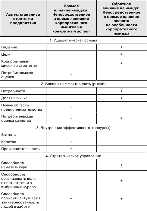 Первый ракурс – прямого влияния имиджа на аспекты анализа стратегии предприятия.