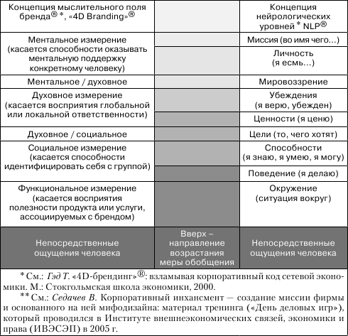 В России сведения о нейрологических уровнях можно почерпнуть из публикаций Михаила Гринфельда,[87] Вадима Седачева[88] и других NLP-консультантов. Формулирование корпоративной миссии как отдельной консалтинговой услуги Седачев даже именует особым, «фирменным» образом – «корпоративный инхансмент»…