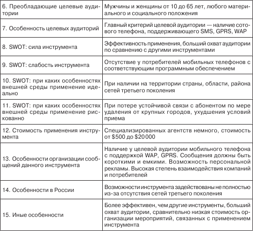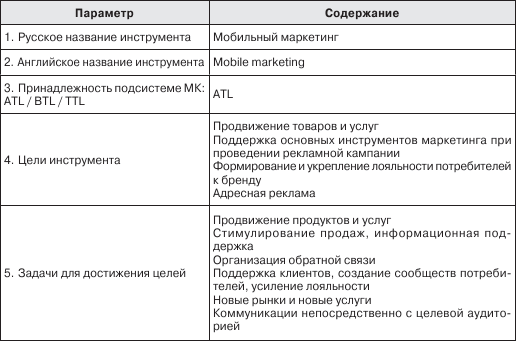 Сведем данные по инструменту «мобильный маркетинг» в табл. 1.1.