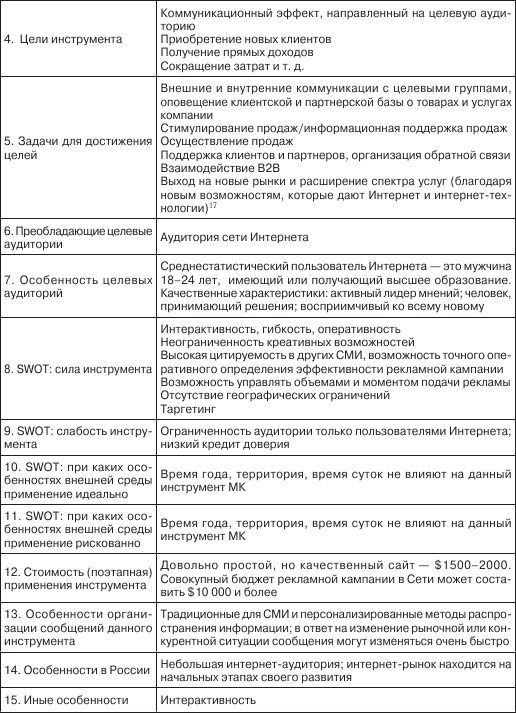 Сведем данные по инструменту «интернет-реклама» в табл. 3.1.[34]
