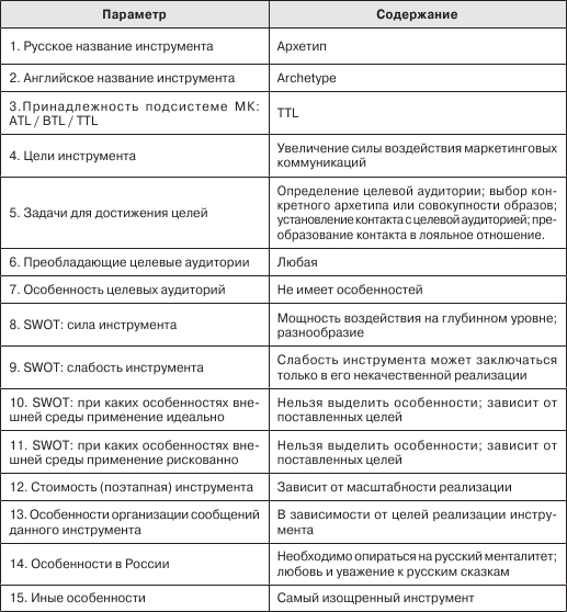Сведем данные по инструменту «архетип» в табл. 7.2.