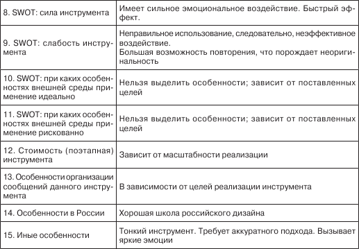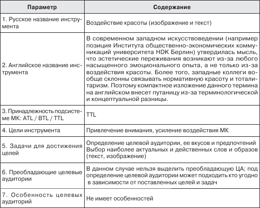 Сведем данные по инструменту «воздействие красоты» в табл. 8.1.