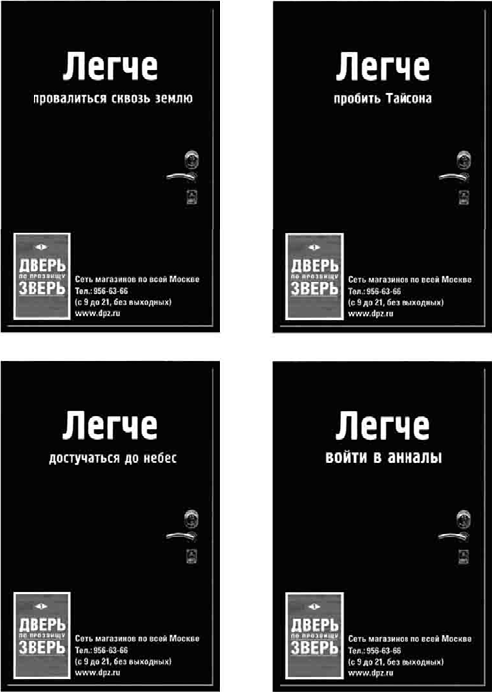 Пример идеи, вызывающей сильные уводящие в сторону от предмета рекламы ассоциации, представлена на илл. 1.4.1. – 1.4.4.