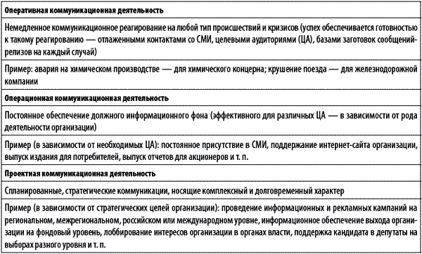 Считается, что коммуникационная деятельность любой организации включает в себя три типа программ:
