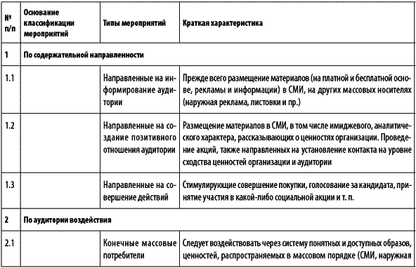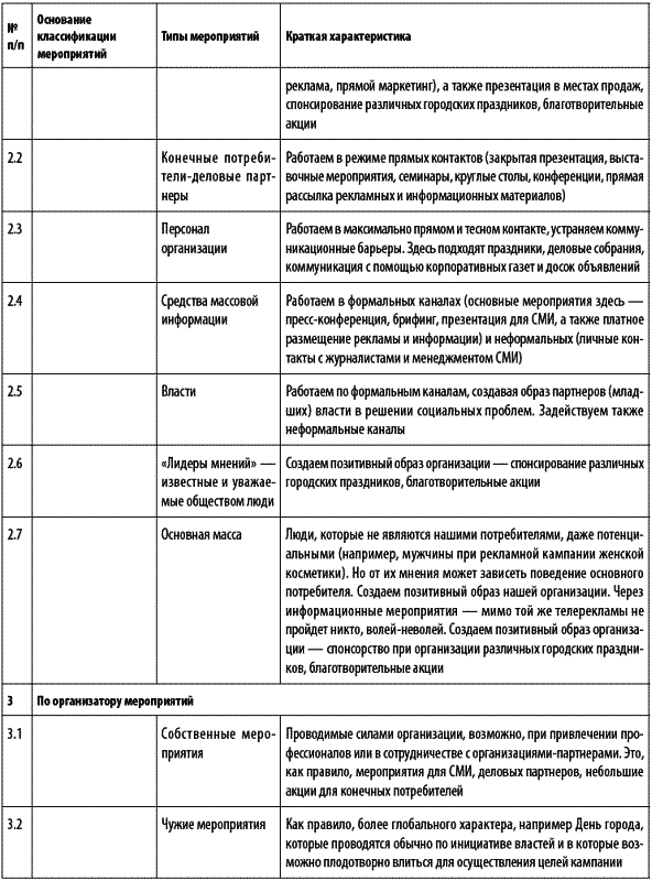 Таблица 5. Классификация корпоративных коммуникационных мероприятий