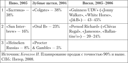 Таблица 2. Соотношение долей рынка российских лидеров.