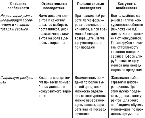 Таблица 0.1. Особенности растущего рынка, которые нужно учитывать