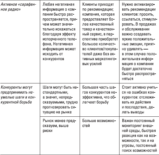 В табл. 0.1 описан ряд особенностей растущего рынка, которые нужно учитывать. Они имеют как положительные, так и отрицательные последствия для бизнеса. Вам важно учитывать и устранять негативные последствия, но максимальное внимание необходимо уделить использованию положительных аспектов.