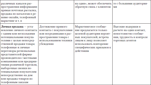 Разберем подробно основные виды маркетинговых коммуникаций с точки зрения целей, которые они реализуют, а также их достоинств и недостатков. Ведь все они влияют в конечном итоге на эффективность маркетинга. Итак, к основным маркетинговым коммуникациям относятся: реклама, PR {public relations — связи с общественностью), стимулирование сбыта, прямой маркетинг, личные продажи, коммуникации в местах продаж.