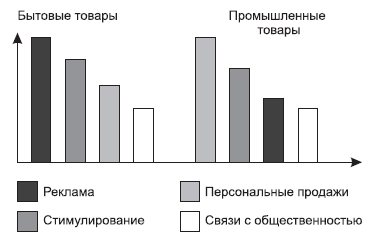 Рис. 1. Эффективность разных видов продвижения для разных групп товаров