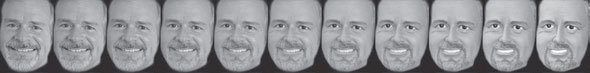 Кристин Лузер и Т. Ветли (Christine Looser, T. Wheatley, 2010) брали фотографии людей и видоизменяли их, последовательно приближаясь к образу неодушевленного манекена. Предметом исследования было то, в какой момент последовательной трансформации лица субъект решит, что картинка больше не является изображением живого человека. На рис. 4.2 показаны примеры таких картинок. Исследования показали, что опрашиваемые переставали считать субъекта на картинке живым после того, как изменения достигали 75 %. Также было обнаружено, что люди, чтобы решить, является ли изображение живым человеком, в основном обращают внимание на глаза.