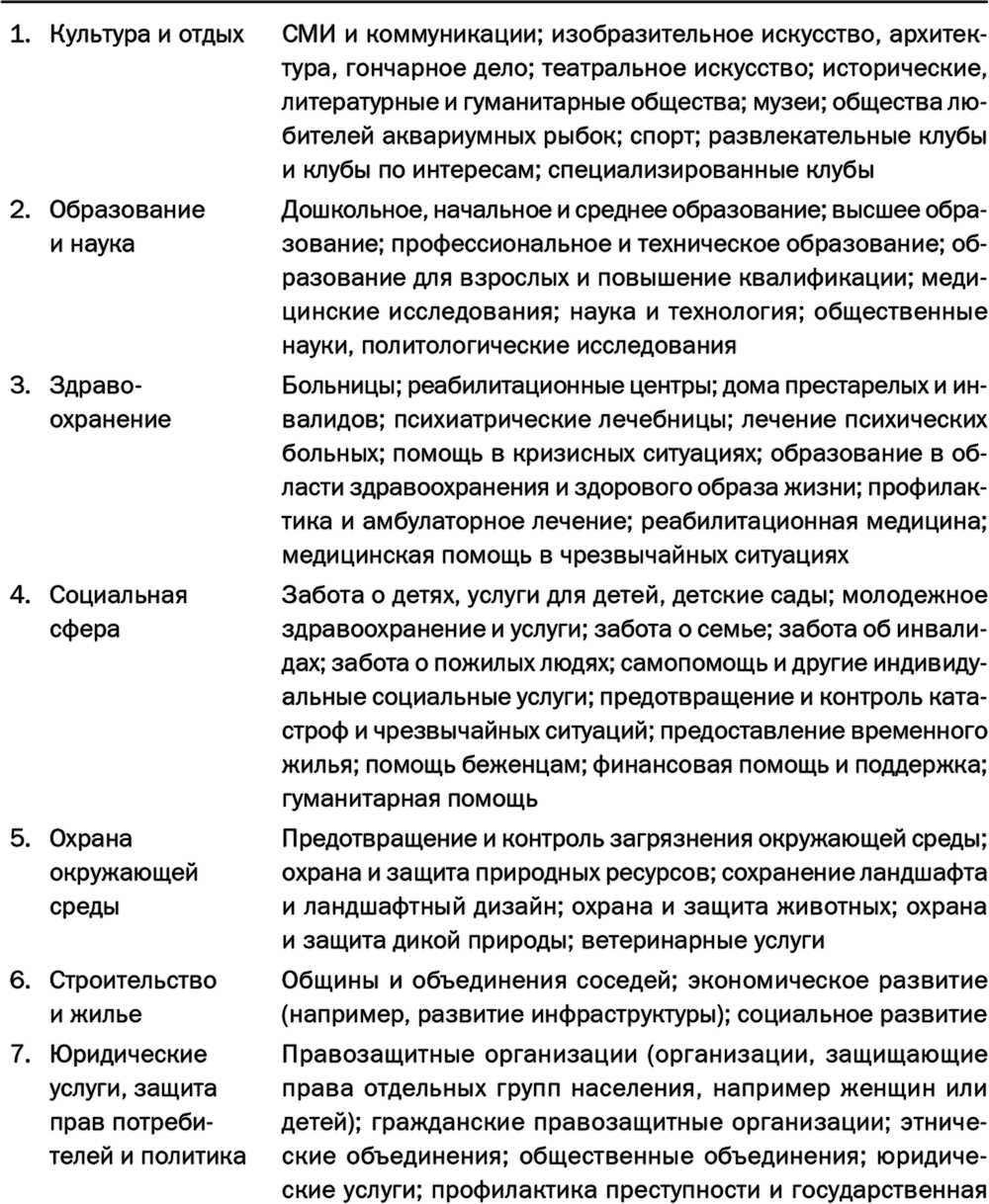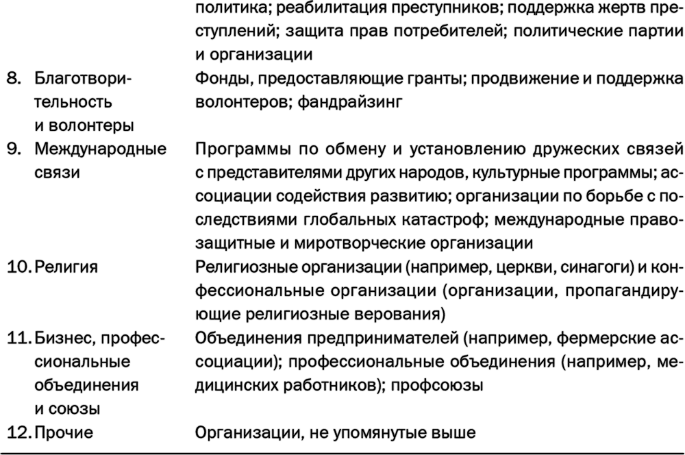 Таблица 2.1. Основные категории (группы) некоммерческих организаций