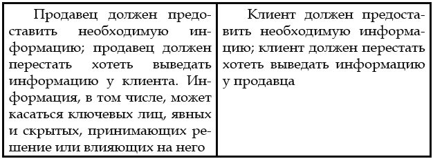 Как говорится, их может быть миллион – клиент может хотеть, чтобы вы чувствовали себя виноватым, некомпетентным. Клиент может желать, чтобы вы вконец запутались или восторгались им. Того же можете хотеть и вы. Клиент может стремиться к тому, чтобы вы вышли из кабинета или что-то ему дали. Тут может быть множество вариантов.