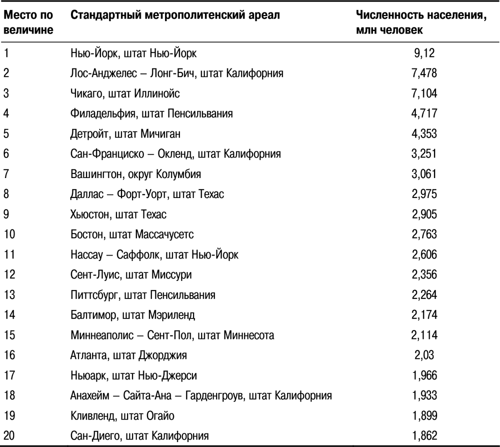 Таблица 4.1. Рынки 20 крупнейших СМА Соединенных Штатов Америки