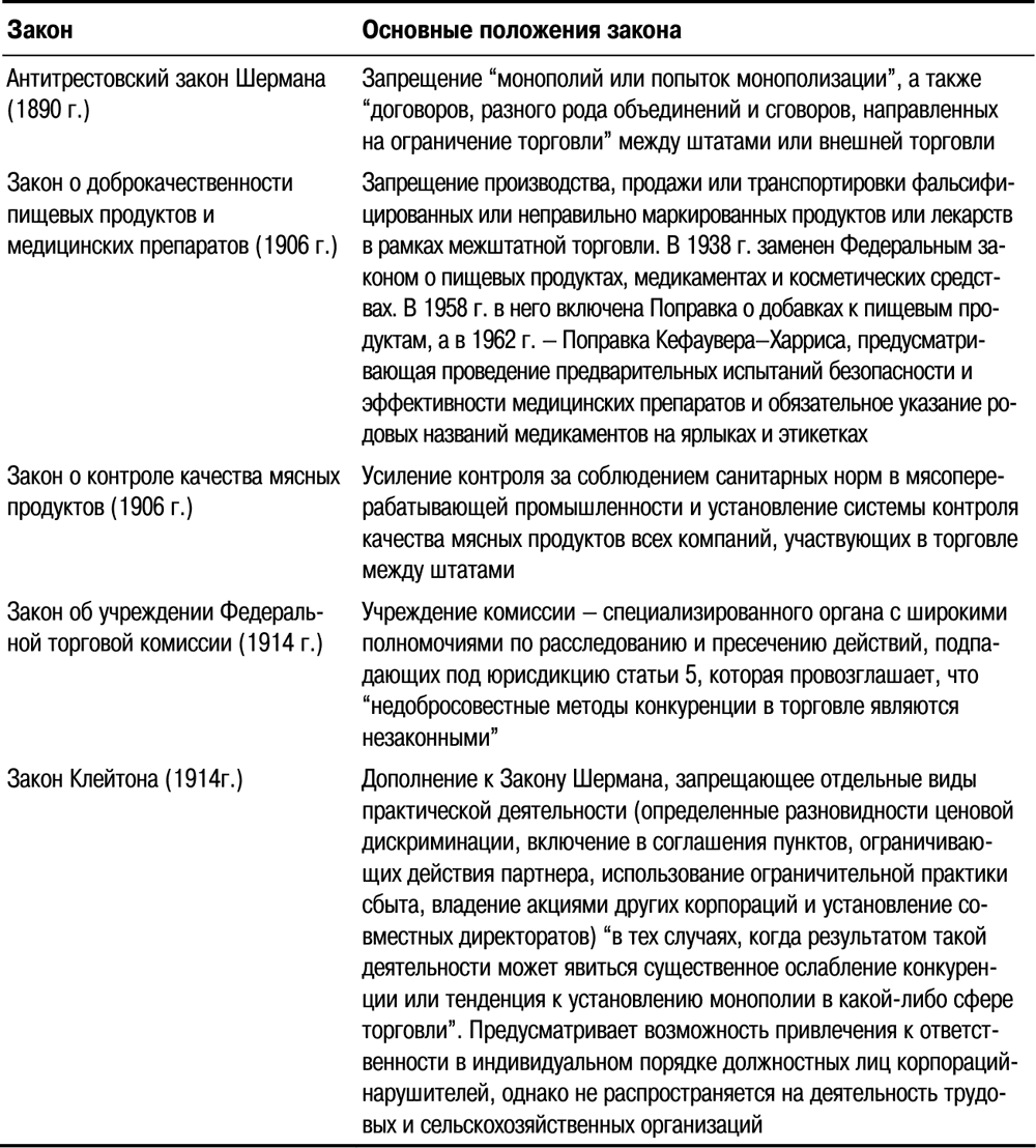 Таблица 4.4. Основные законы США, регулирующие деятельность в сфере маркетинга