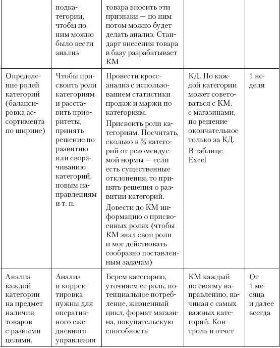 Таблица 1.4. Пример бизнес-плана по внедрению категорийного менеджмента