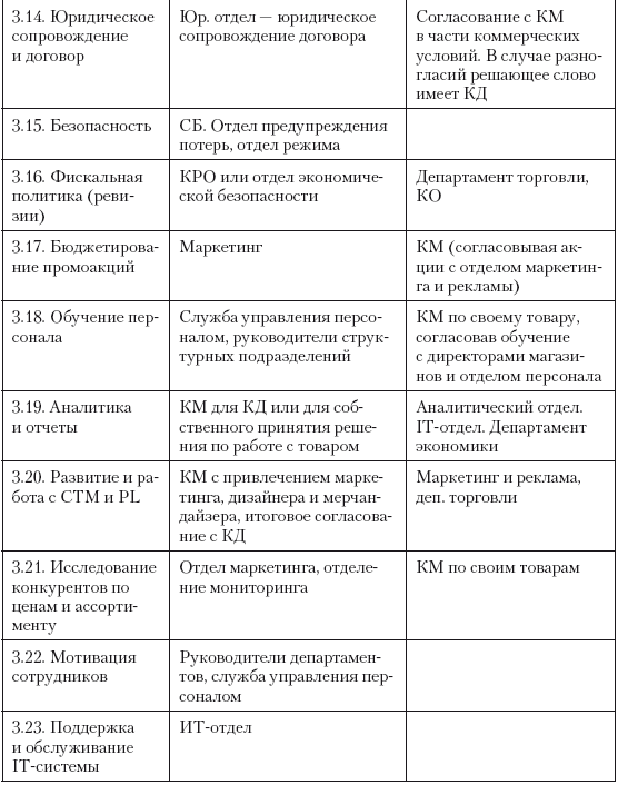 Это значит, что по всем вопросам закупки и продажи категории, требующим участия других отделов, категорийный менеджер должен ставить в известность руководителей этих отделов. Свои действия по закупке и продаже категорий он должен корректировать в зависимости от целей других отделов.