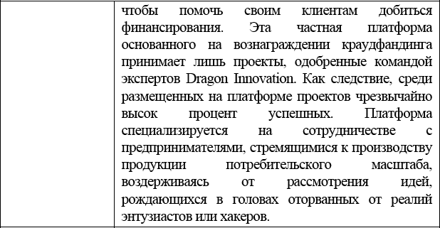 Платформа Dragon Innovation предлагает идеальное решение людям, у которых имеются идеи касательно разработки, производства, маркетинга, дистрибуции и продажи технологичной продукции. Как вам станет известно из интервью со Скоттом Миллером (Scott Miller), директором-распорядителем Dragon Innovation, которое приводится в тринадцатой главе, помимо конкурентоспособности, есть несколько других аспектов, определяющих отличие платформы Dragon Innovation от других краудфандинговых платформ.
