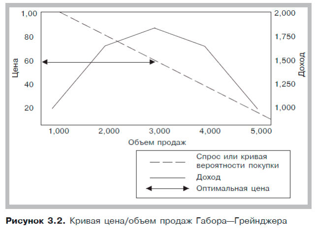 Для измерения чувствительности к цене нужно протестировать различные варианты цен. Очевидно, если отдельному респонденту представить полностью идентичный товар, отличающийся лишь по цене, он проявит исключительную чувствительность к цене и начнет торговаться. Последовательные тесты кажутся привлекательными благодаря сокращению расходов на исследования, но их смысл в таком случае утрачивается. Поэтому применяют одиночные тесты – каждого респондента спрашивают лишь об одной цене. В ходе опроса респондентам, включенным в выборку, предлагают разные варианты цены. Респонденты не знают об этом, как и о цели исследования, посвященного определению цены. Тесты Габора – Грейнджера просты, надежны и широко используются для предсказания спроса при разном уровне цены (данный метод иногда называют методом построения кривых вероятности покупки). С их помощью можно прогнозировать оптимальный уровень доходов. Если только цена не опускается до уровня, при котором покупатель начинает сомневаться в качестве товара, можно ожидать, что самая низкая цена обеспечит вам наибольшую рыночную долю.