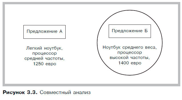 Совместный анализ (conjoint, trade-off analysis) – статистический метод, разработанный математиком-психологом Льюсом (Luce) и статистиком Тьюки (Tukey). Он отражает процесс принятия решений человеческим мозгом. В ходе теста от респондентов требуется сделать выбор одного из двух товаров, что позволяет точно ранжировать выгоды и сочетания выгод товаров при разном уровне цены. В качестве примера можно привести случай, когда по пути с работы домой вам нужно заправиться: насколько дешевле должен быть бензин на другой стороне дороги, чтобы компенсировать неудобство пересечения транспортной магистрали?