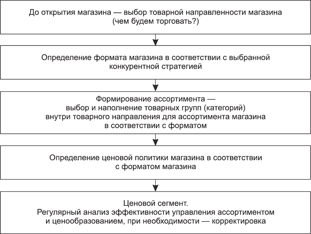 Рис 2. 1. Этапы управления ассортиментом и ценами в розничном магазине.