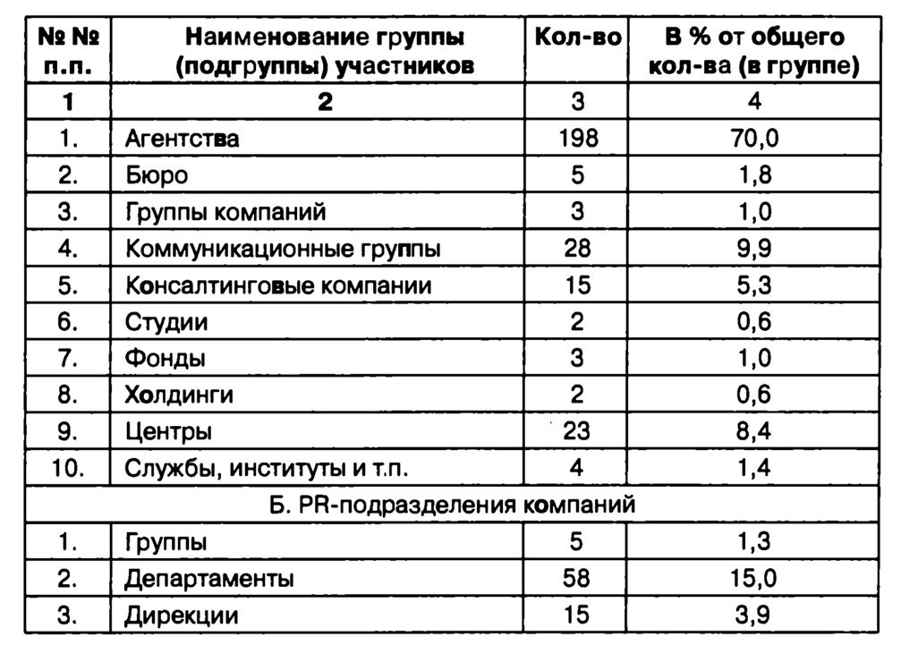 Прежде всего условимся, что в данной главе будут освещаться только вопросы деятельности сторонних (по отношению к предприятию-инициатору связей с общественностью) PR-структур, т. е. специализированных предприятий, предоставляющих своим заказчикам услуги в области связей с общественностью, или PRподразделений в составе маркетинговых или консалтинговых агентств и компаний.* (* Организация отдела по связям с общественностью на предприятии рассматривается в разделе III настоящей книги). По данным Российского общества по связям с общественностью (РАСО)* (* www.raso.ru) и профессионального PR-портала Sovetnik.ru* (* www.sovetnik.ru) в середине 2007 г. в России функционировало около 900 PR-структур, значительная часть которых специализируется в области бизнес-связей с общественностью (в середине 2002 г. – около 150). Справка о деятельности РАСО, а также тексты наиболее важных нормативно-методических документов по вопросам осуществления профессиональной деятельности в области связей с общественностью представлены в приложении 1 к настоящему пособию.