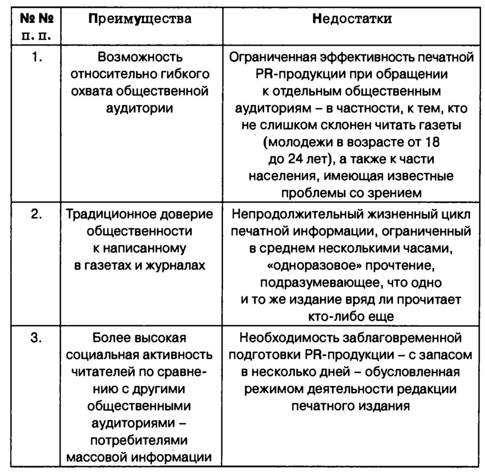 Основные преимущества и недостатки печатной PR-продукции представлены на рис. 2.8.