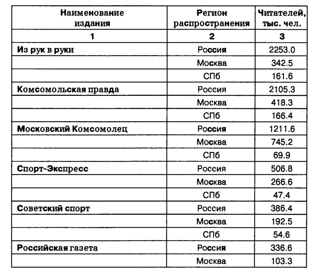 Строго говоря, тираж газеты – это не количество ее экземпляров, сошедших с печатной машины, а число реально проданных газет. Зная реальный (подчеркнем это еще раз) тираж газеты и примерную географию его распространения, несложно определить, какую примерно аудиторию можно охватить соответствующей PRинформацией.