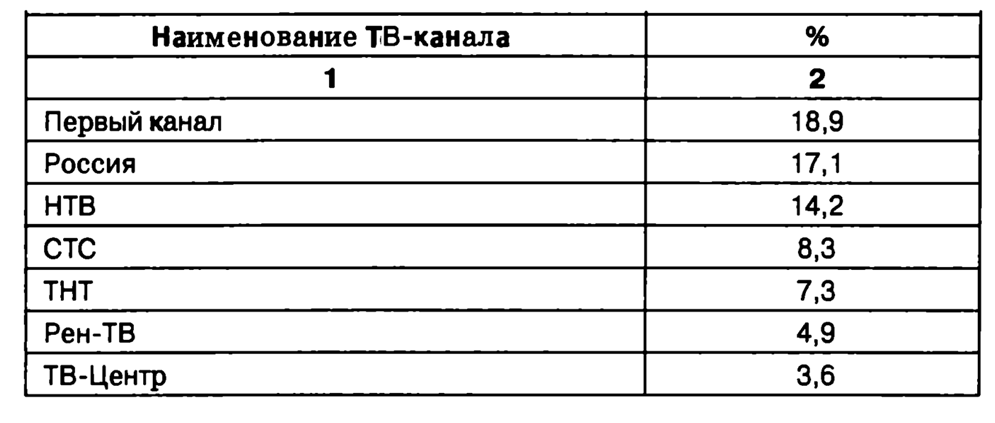 Отметим, что телевидение, выполняя, помимо информационно-развлекательной, еще и функцию «жевательной резинки для глаз», обладает сегодня самой обширной аудиторией. Объясняется это просто – «в телевизоре» есть все, и к тому же совершенно бесплатно (за исключением доступа к небольшому числу каналов кабельного и спутникового вещания).