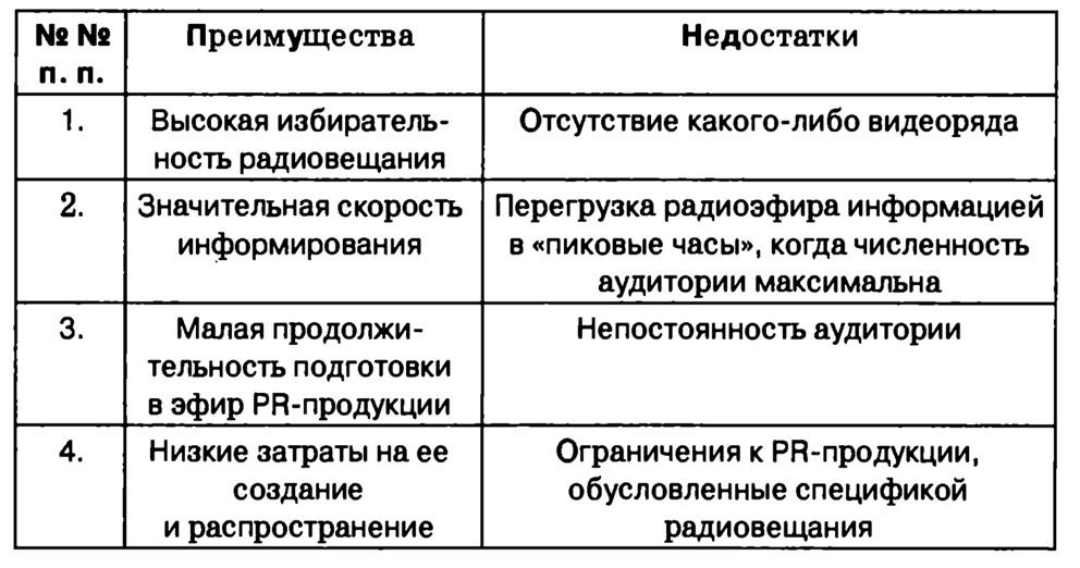 Преимущества и недостатки распространения PR-информации по радио представлены на рис. 2.10.