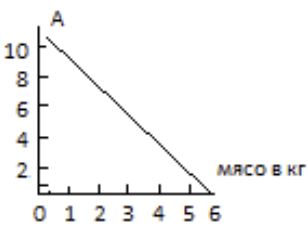 ПРИМЕР. Предположим, что бюджет на питание равен 10 долларам в неделю. Цена 1 кг мяса – 2 доллара, а цена 1 кг сыра – 1 доллар. Если захотите потратить все свои деньги на мясо, то вы можете купить 5 кг, а если же на сыр, то 10 кг. Все имеющиеся варианты потребительского выбора в данном случае можно показать на графике (рис. 9) в виде диагональной линии АБ, которая в экономической теории называется бюджетной.