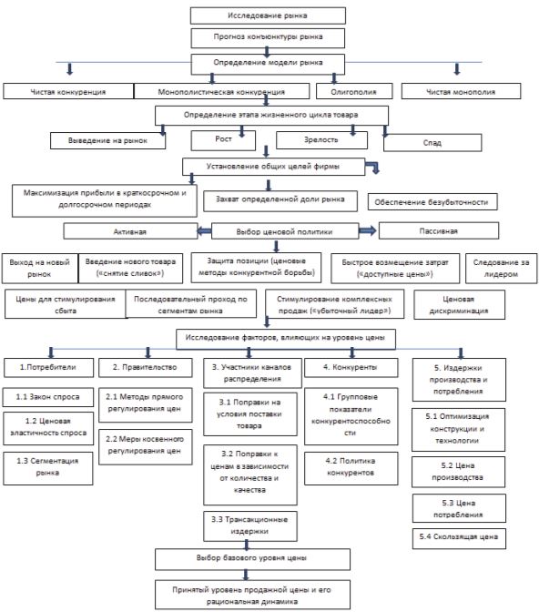 Схема 1. Прогнозирование и выбор ценовой политики фирмы и определение уровня продажной (выигрышной) цены товара