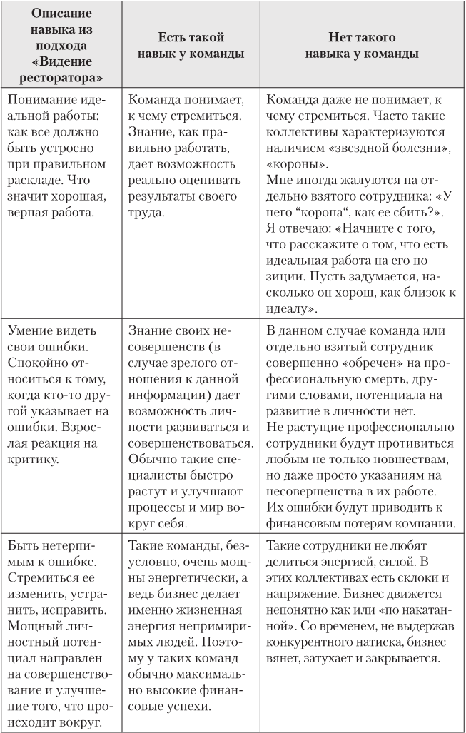 Если, ознакомившись с этой таблицей, у вас появилось желание развивать в ваших сотрудниках видение ресторатора, вы можете действовать следующими методами: