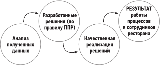 На базе анализа отклонений от 100-процентного результата руководство должно вырабатывать решения по корректировке ситуации. Для этого я рекомендую использовать принцип ППР (подробнее о нем в книге «Управление рестораном, который любит гостей»).