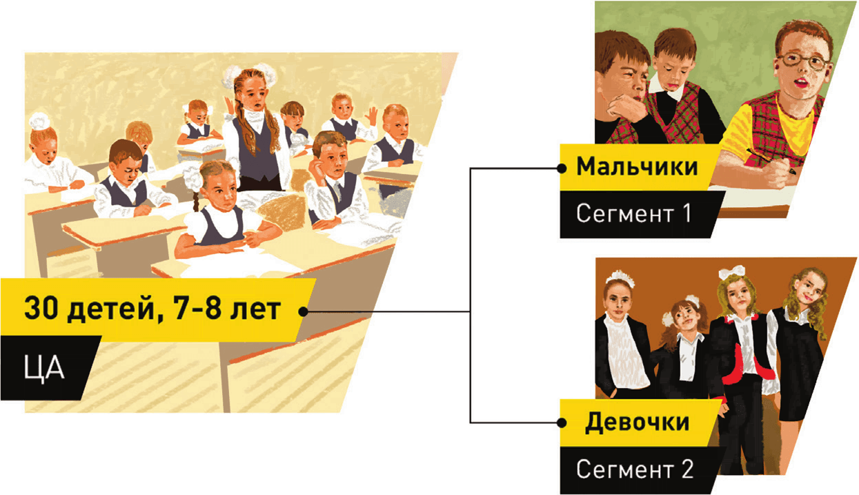 Сегмент № 1 – мальчики, сегмент № 2 – девочки. Сегмент – это группа людей.