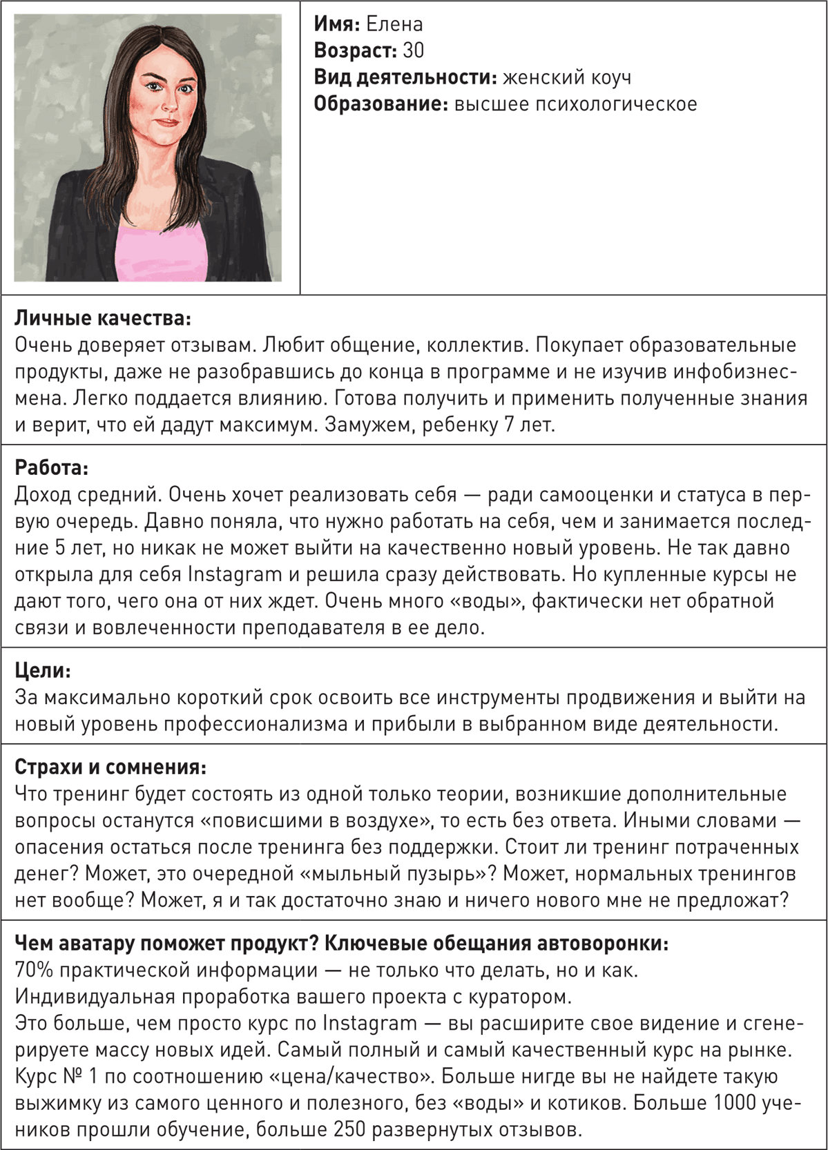 Ниже расположены примеры заполнения портретов клиентов. Они специально подобраны с учетом специфики различных ниш и особенностей продуктов.