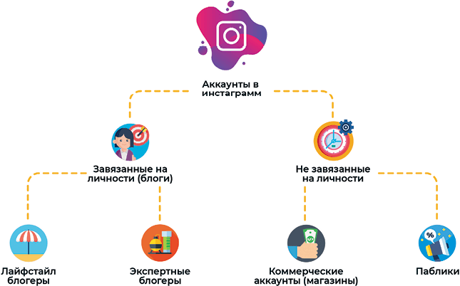 В целом аккаунты можно разделить на две группы – это БЛОГИ и КОММЕРЧЕСКИЕ аккаунты; первые завязаны на личности того, кто их ведет, вторые – нет.