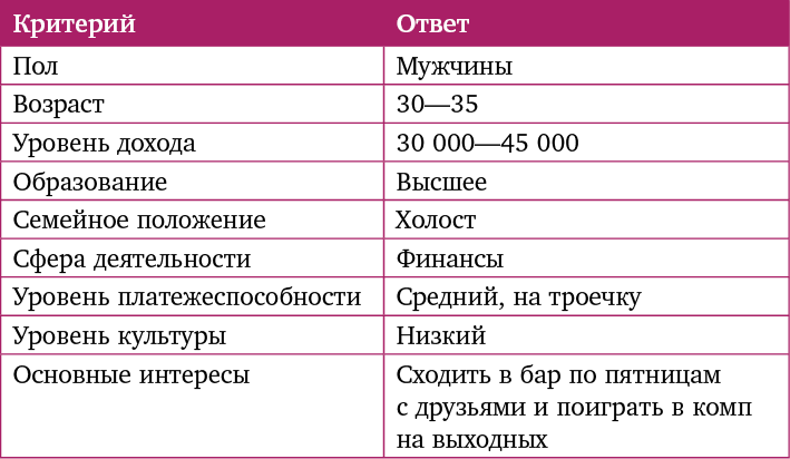 Опишите свою целевую аудиторию так, как вы определяете ее сейчас, а после прочтения главы посмотрите, как поменяется ваше представление.