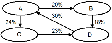 Данные таблицы 10 удобно представить в виде графа (рисунок 4). Видно, что процесс перехода был не таким уж простым. Так, рост доли приверженцев А произошел только за счет категории D. Никто не перешел на марку А от конкурентов, напротив, многие, покупавшие А, стали покупать В или С. Отсюда можно сделать вывод о том, что новая упаковка привлекла покупателей, которые ранее не имели постоянной марки, но чем-то не понравилась большой части старых покупателей. Фактически, конкурентам удалось переманить часть наших постоянных покупателей. Таким образом, успехи в борьбе с конкурентами В и С были отнюдь не впечатляющими.