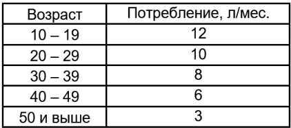 Таблица 11 – Потребление безалкогольных напитков в зависимости от возраста