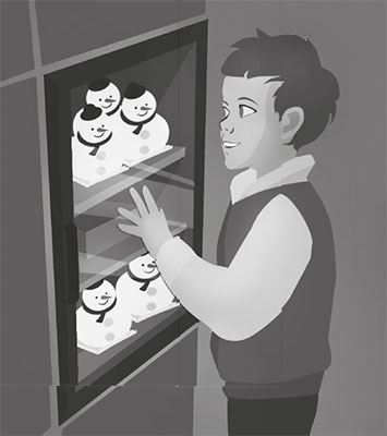 Перед Новым годом в меню кофейни всегда появляются новые и оригинальные десерты. Как-то днем перед праздниками пришли пообедать мама с сыном лет пяти. Ребенок первым делом побежал к витрине и сразу же обратил внимание на симпатичного «Снеговика». Но мальчик забеспокоился, что ему пирожного не достанется – «Снеговик» на витрине был только один. Увидев, как он переживает, официант с разрешения мамы предложил мальчику пройти к холодильнику в холодном цехе кухни и, подняв ребенка на руки, показал, что на полке еще есть пять «Снеговиков». Малыш довольный вернулся к маме с радостным криком: «Их там много, всем хватит!»