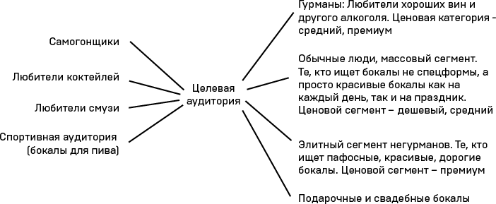 Мы посмотрели, какие напитки какая аудитория преимущественно пьет или готовит. На кого мы будем ориентироваться. Составили mind-map потребителей. Мы не брали чай, кофе и некоторые другие напитки. Что с ними делать, подумаем позже. B2B-аудиторию тоже не учитывали.