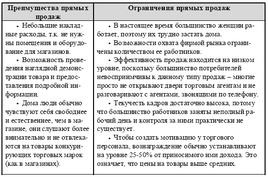 Прямые продажи включают личные контакты с потребителями у них дома (и в других «внемагазинных» местах, например, в офисе) и общение с ними по телефону по инициативе розничного торговца. Прямые продажи, как правило, подразумевают демонстрацию товара покупателю и рекомендации по использованию. Это дает возможность клиентам детально ознакомиться с продукцией в удобном для них месте и в удобное время. Покупатель может протестировать продукцию и при желании заказать ее с доставкой на дом.