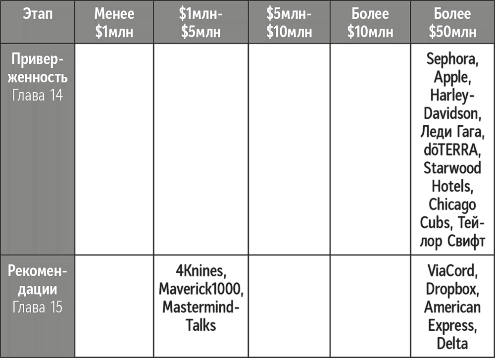 Возможно, вас беспокоит, сможете ли вы позволить себе внедрить стратегии и инструменты, представленные в этой книге. И вновь позвольте рассеять ваши страхи, потому что всё это вам по плечу. Если годовой доход вашего бизнеса меньше $100 000, вы можете позволить себе инструменты, описанные в этой книге. Если ваш бизнес приносит миллиарды долларов, вы более чем в состоянии использовать их. Я включил кейсы компаний, чей годовой доход составляет от $50 000 до $220 млрд и больше.
