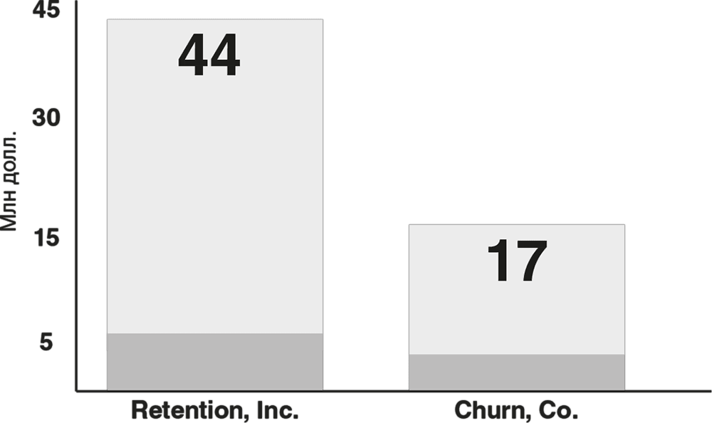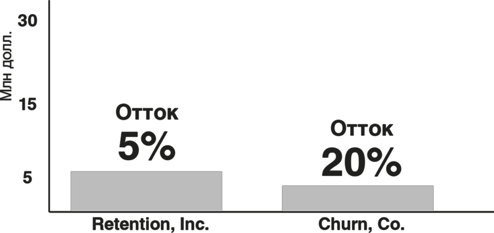 Зачастую тренды легче всего определить, наблюдая за поведением стартапов Кремниевой долины. За последние два года венчурные капиталисты значительно выше оценивают рыночную стоимость компаний с низким уровнем оттока клиентов (то есть потери клиентов). Компания Gainsight предлагает пример: две компании с разным уровнем оттока клиентов имеют схожую рыночную стоимость за первый год работы.
