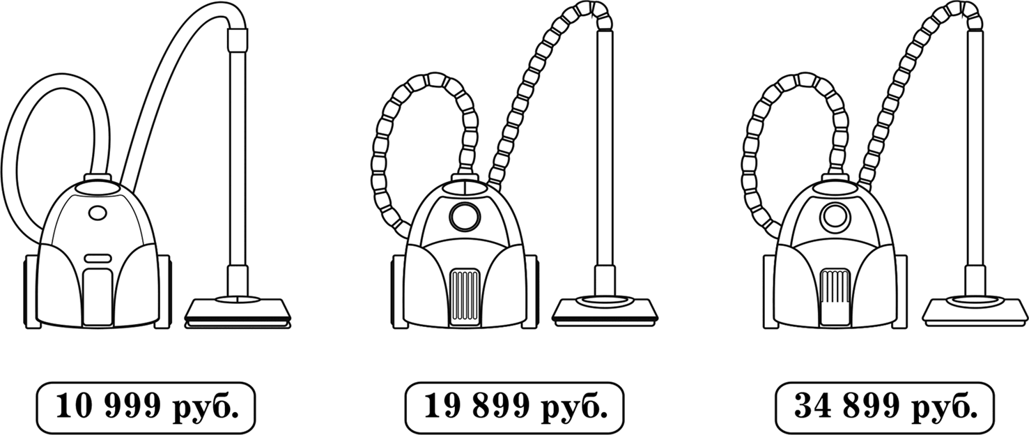 На картинке – различные марки пылесосов Miele в интернет-магазине крупного российского ретейлера. Средний вариант оптимально учитывает психологию потребителя – по цене ближе к дешевому варианту, но внешне похож на наиболее дорогой.