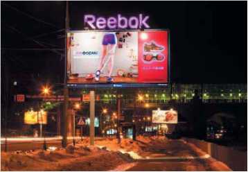 В наружной рекламе говорят и о городских конструкциях. Это различные уже имеющиеся сооружения, которые могут быть использованы в качестве рекламоносителя, – городские часы, указатели метро, информационные табло, урны, телефонные будки, скамейки и т. д.