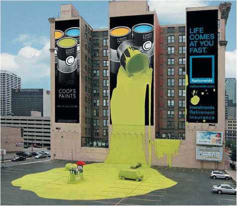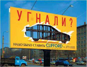 На илл. 1.2. видно, как искажается смысл рекламы из-за воздействия ветра Наружка находится в условиях большой визуальной конкуренции: различные конструкции, люди, транспорт, другая реклама и т. д.