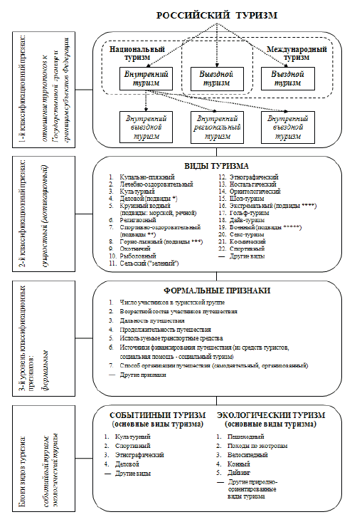 В представленной классификации российского туризма выделяются типы, подтипы, виды, подвиды и блоки.