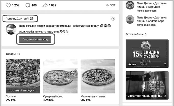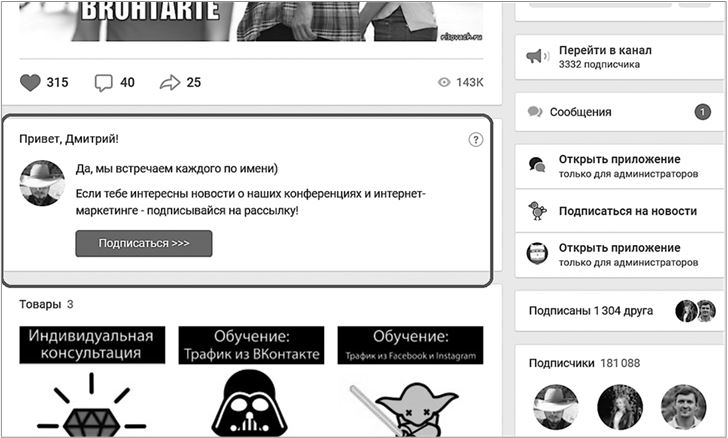 Представляете обычного пользователя, не искушенного в маркетинге? Он заходит в группу, где его приветствуют по имени и предлагают получить промокод или скачать полезные видео (рис. 7). Вау-эффект! Поэтому они и работают.